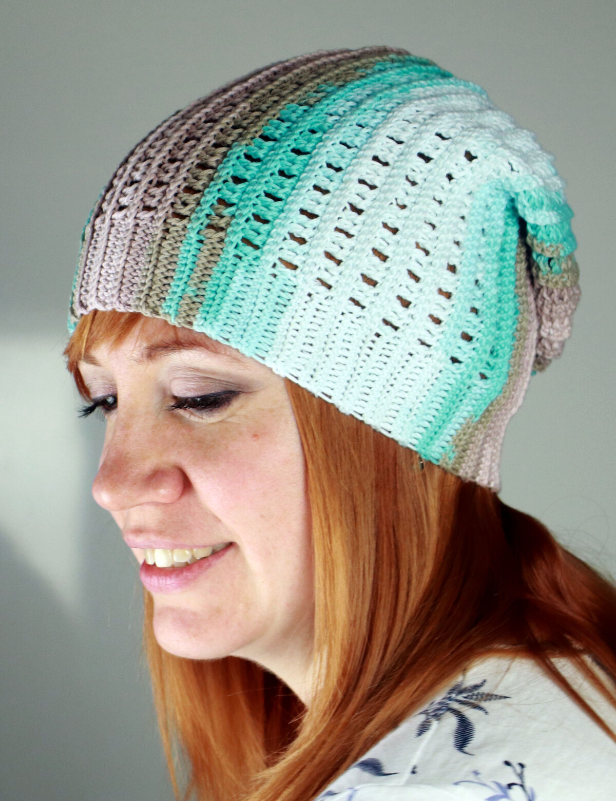 Шапочка Бини с модной спущеной макушкой пользуется большой популярностью. А летний вариант такой шапочки не оставит равнодушным никого! Насладитесь вязанием с помощью подробного мастер класса.