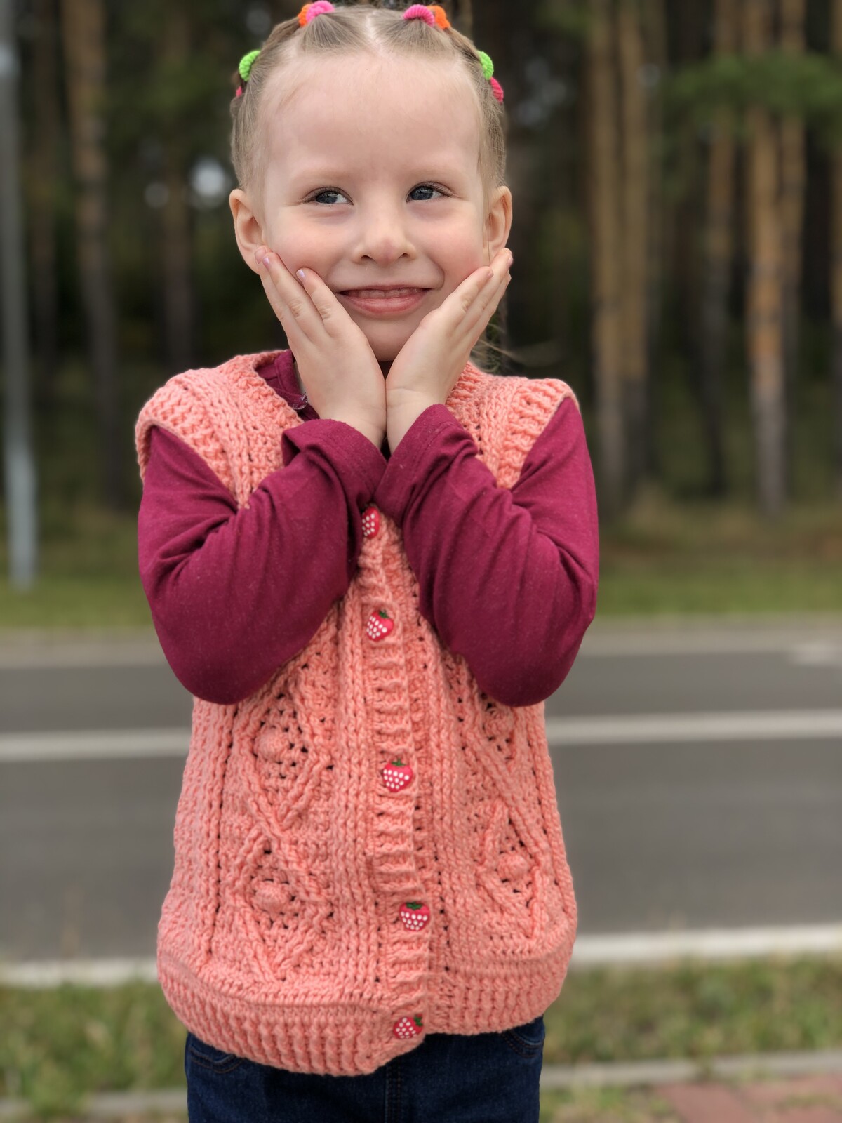Красивый вязаный жилет с косами