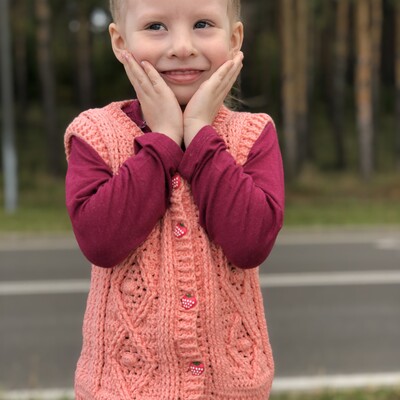 Вяжем крючком красивый жилет с косами. Мастер-класс в котором подробно разобрана каждая петелька. Вы легко научитесь вязать косы и ромбы из рельефных столбиков.