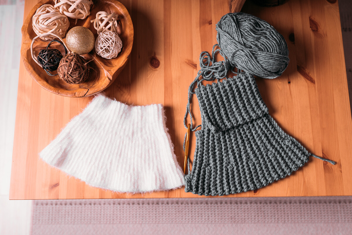 - Пряжа: мериносовая шерсть, меринос/акрил, шерсть/акрил. При выборе важно учитывать, чтобы пряжа была мягкой (не кололась) и упругой (немного растягивается, если потянуть в разные стороны и сжимается обратно, если отпустить). Метраж может быть разный, примерно 150-350 метров/100 г.